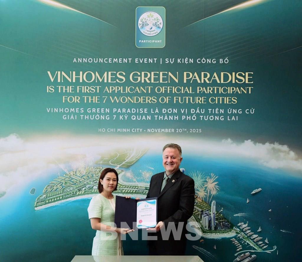 Thực tế, Vinhomes Green Paradise đã tạo tiếng vang trên trường quốc tế khi trở thành ứng viên chính thức đầu tiên của chiến dịch bầu chọn “7 Kỳ quan Đô thị Tương lai” do New7Wonders phát động. Đây không chỉ cột mốc mang tính biểu tượng, còn là lời khẳng định cho niềm tin đặt vào một dự án đầy triển vọng, giàu tiềm năng phát triển trong bức tranh đô thị thời đại mới. Theo mạng lưới các tập đoàn truyền thông hàng đầu châu Á Asia News Network (ANN), với cấu trúc địa lý độc đáo, mặt hướng biển, lưng tựa vào khu dự trữ sinh quyển hàng triệu năm tuổi của Cần Giờ, Vinhomes Green Paradise “được nhìn nhận như một dự án bất động sản chỉ có một lần trong một thế kỷ”.