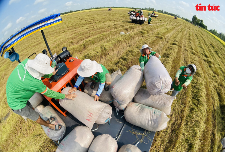 Thu hoạch lúa trên cánh đồng xuất khẩu châu Âu.