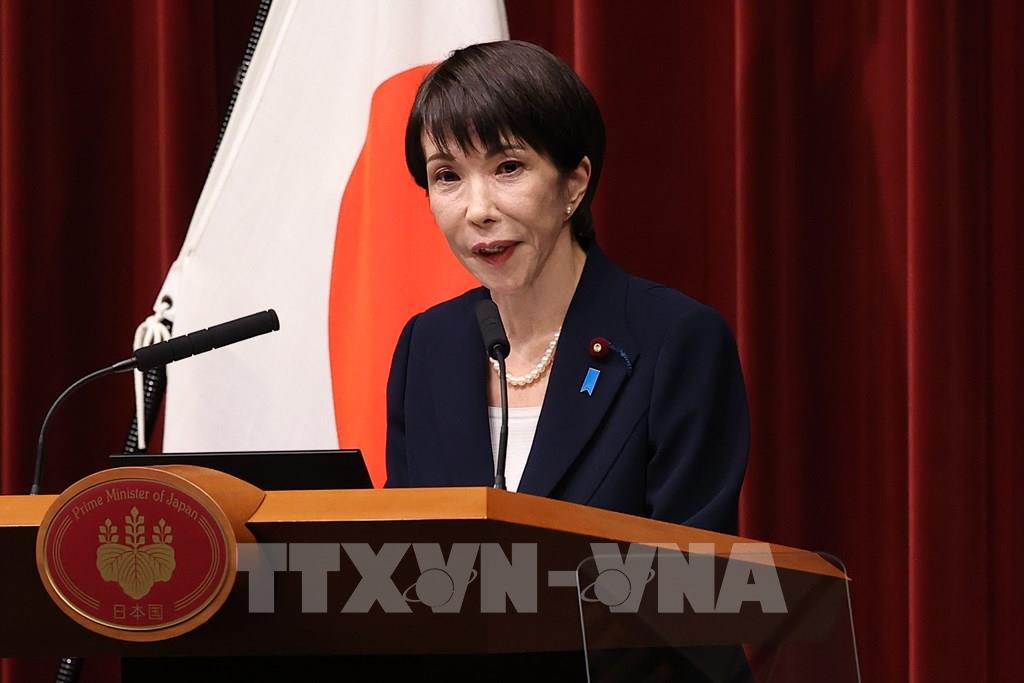 (Tư liệu) Thủ tướng Nhật Bản Sanae Takaichi phát biểu tại cuộc họp báo ở Tokyo. Ảnh: THX/TTXVN