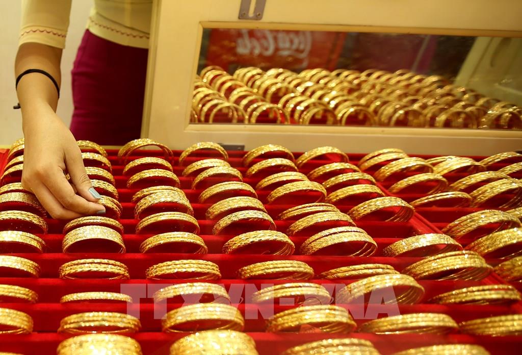 Trang sức vàng được bày bán tại tiệm kim hoan ở Yangon, Myanmar. Ảnh: THX/TTXVN