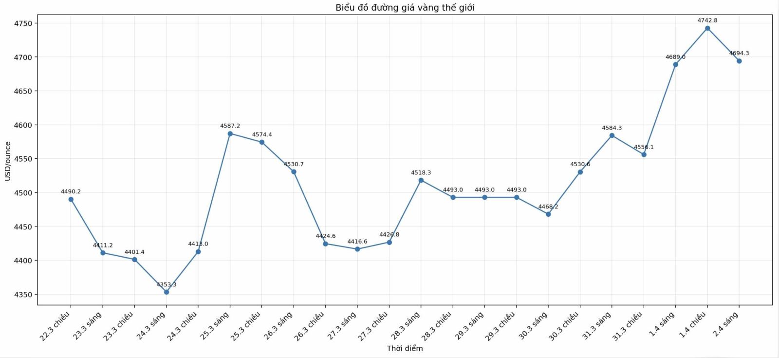 Diễn biến giá vàng thế giới những phiên giao dịch gần đây. Biểu đồ: Khương Duy