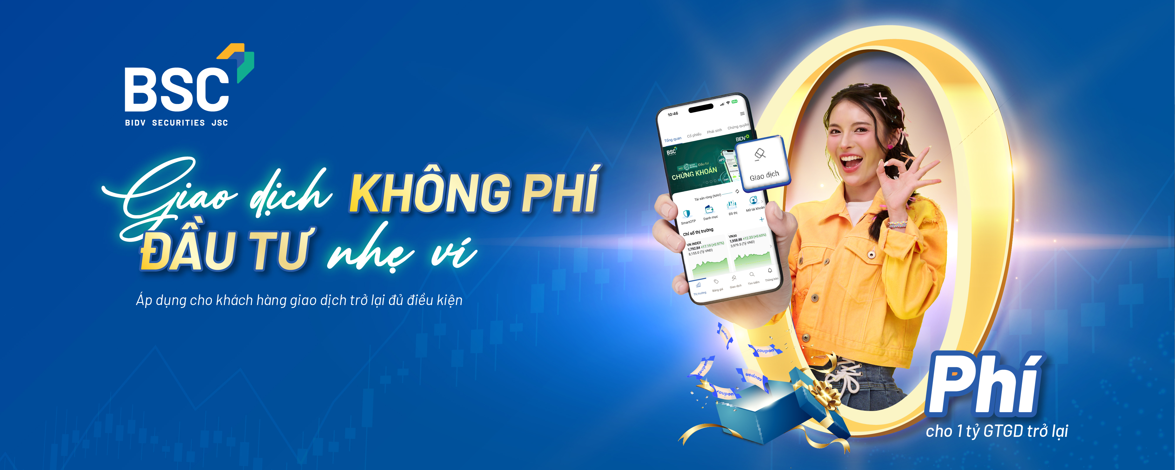 Đồng hành cùng NĐT trở lại bắt nhịp thị trường và đón đầu cơ hội đầu tư mới, BSC triển khai chương trình ưu đãi miễn phí giao dịch với 1 tỷ GTGD dành cho khách hàng giao dịch trở lại tại BSC.