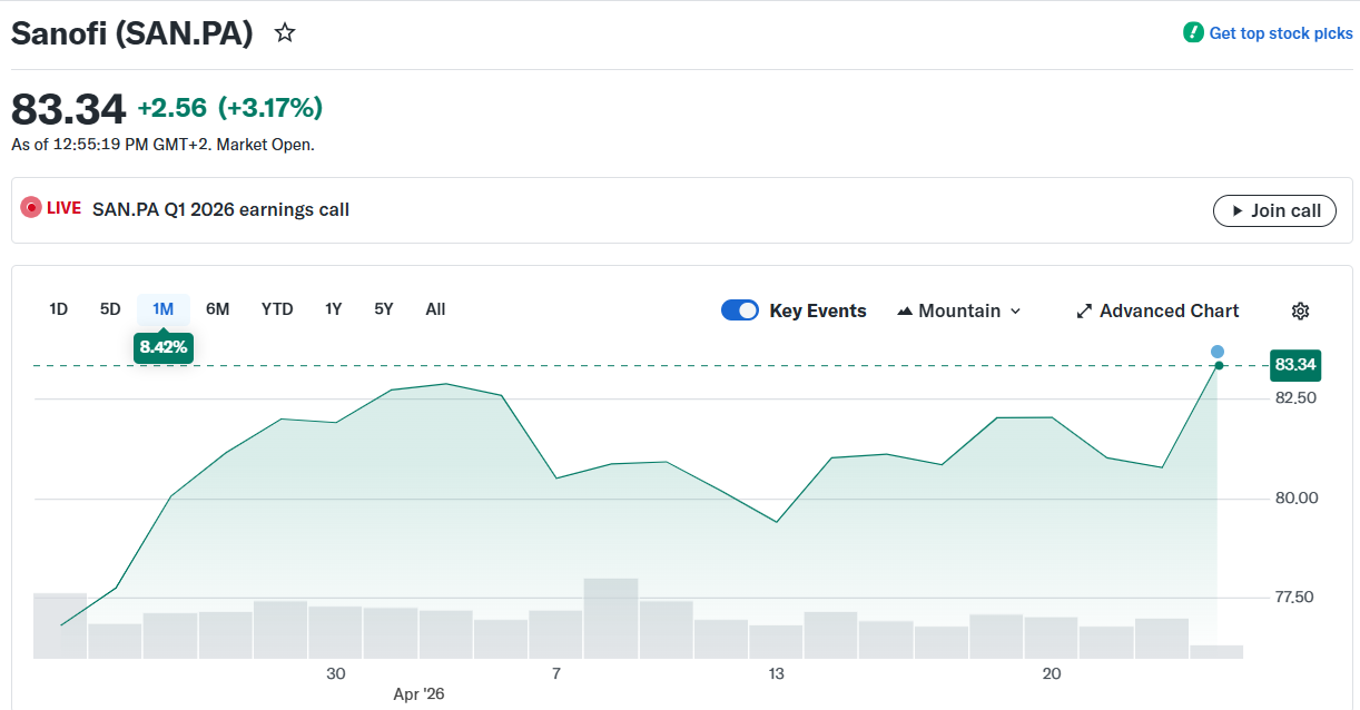 24/04/2026 Sanofi tăng nhờ doanh số Dupixent mạnh mẽ thúc đẩy doanh thu và lợi nhuận quý 1 vượt kỳ vọng