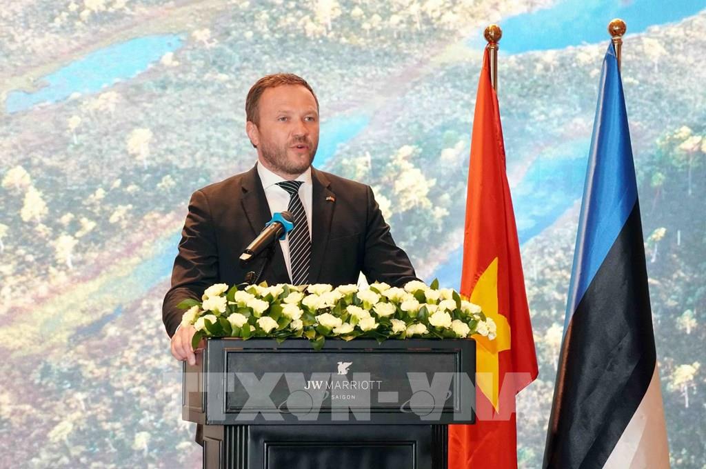 Bộ trưởng Ngoại giao Estonia Margus Tsahkn phát biểu tại sự kiện. Ảnh: Trung Tuyến - TTXVN